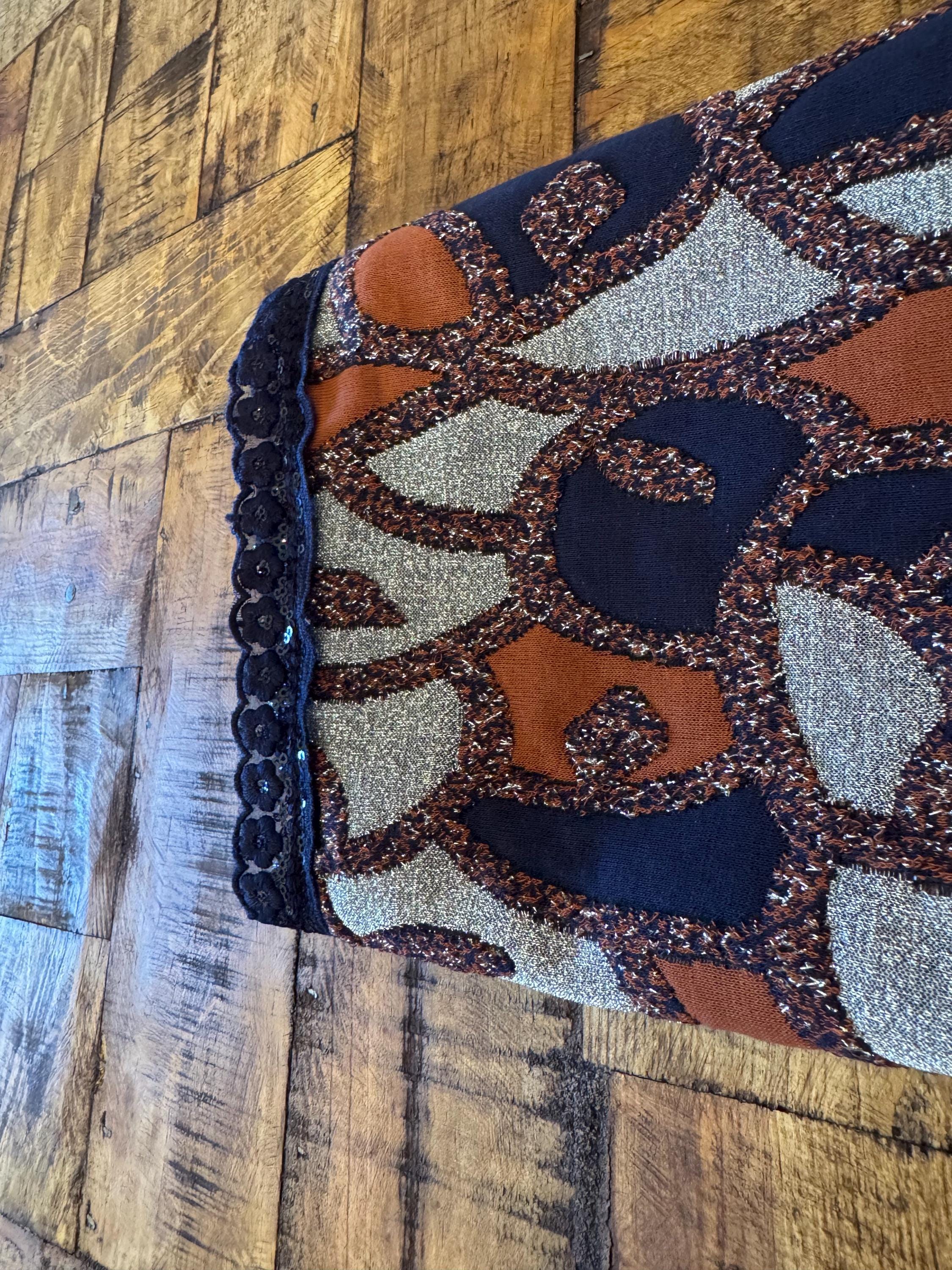 This beautiful handmade scarf has been created with a rich material. We have embellished the scarf with a gorgeous trim, which makes the scarf perfect for any event. Please choose your trim color and mention your selected style number at the time of your purchase.