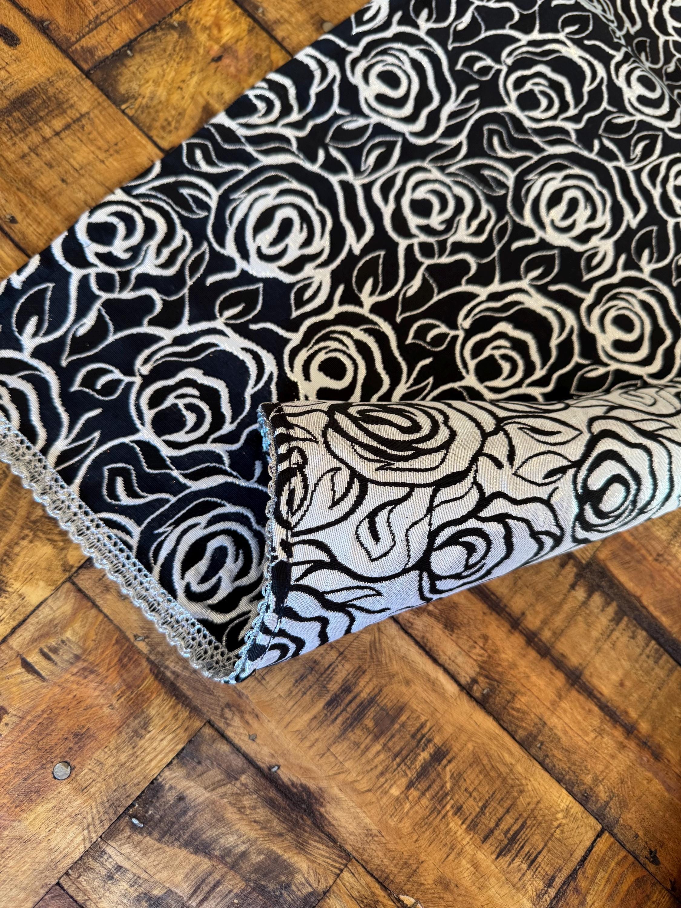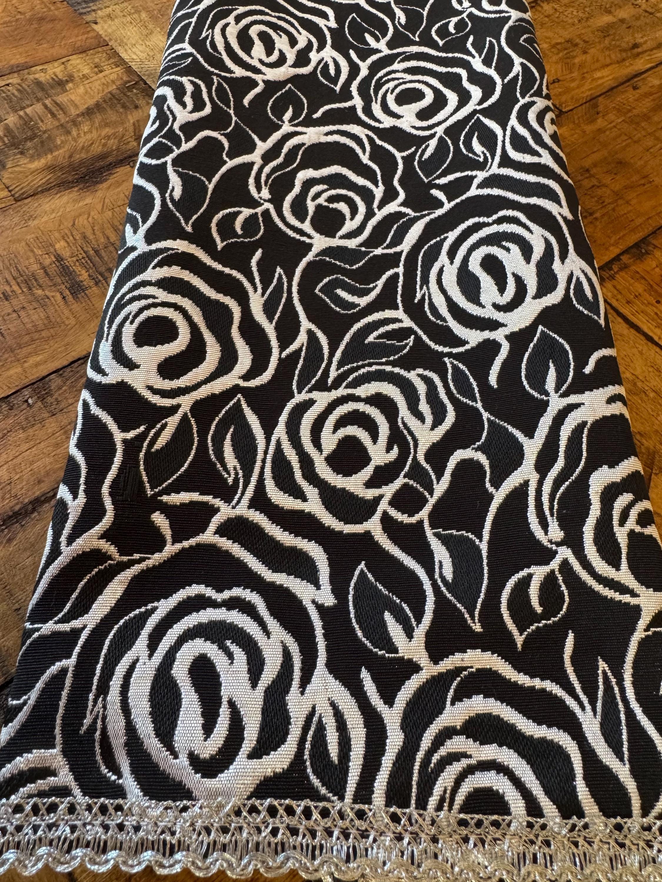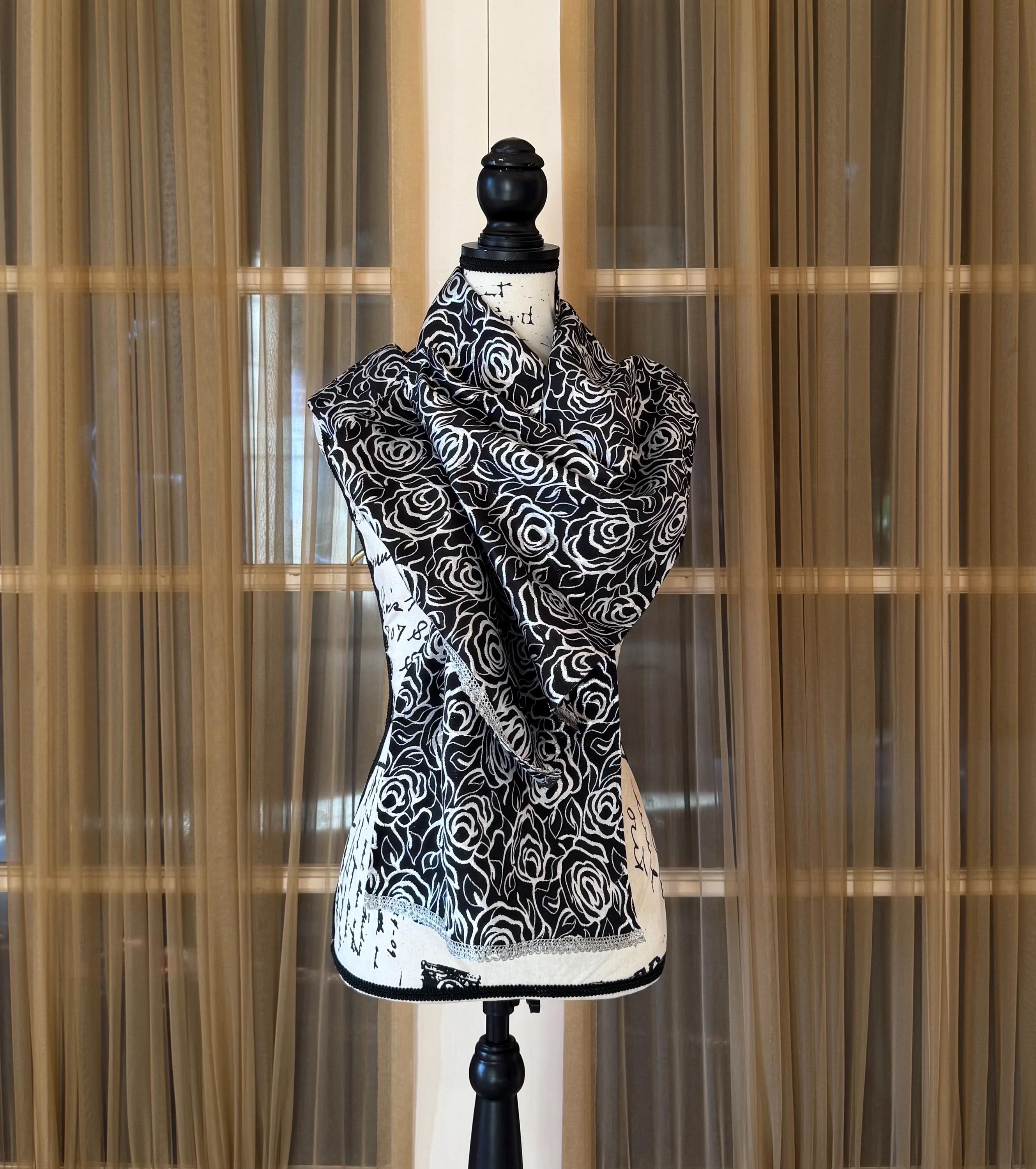 This beautiful handmade scarf is made with a rich material. We have embellished the scarf with a dainty lace that adds elegance and makes the scarf perfect for any event.