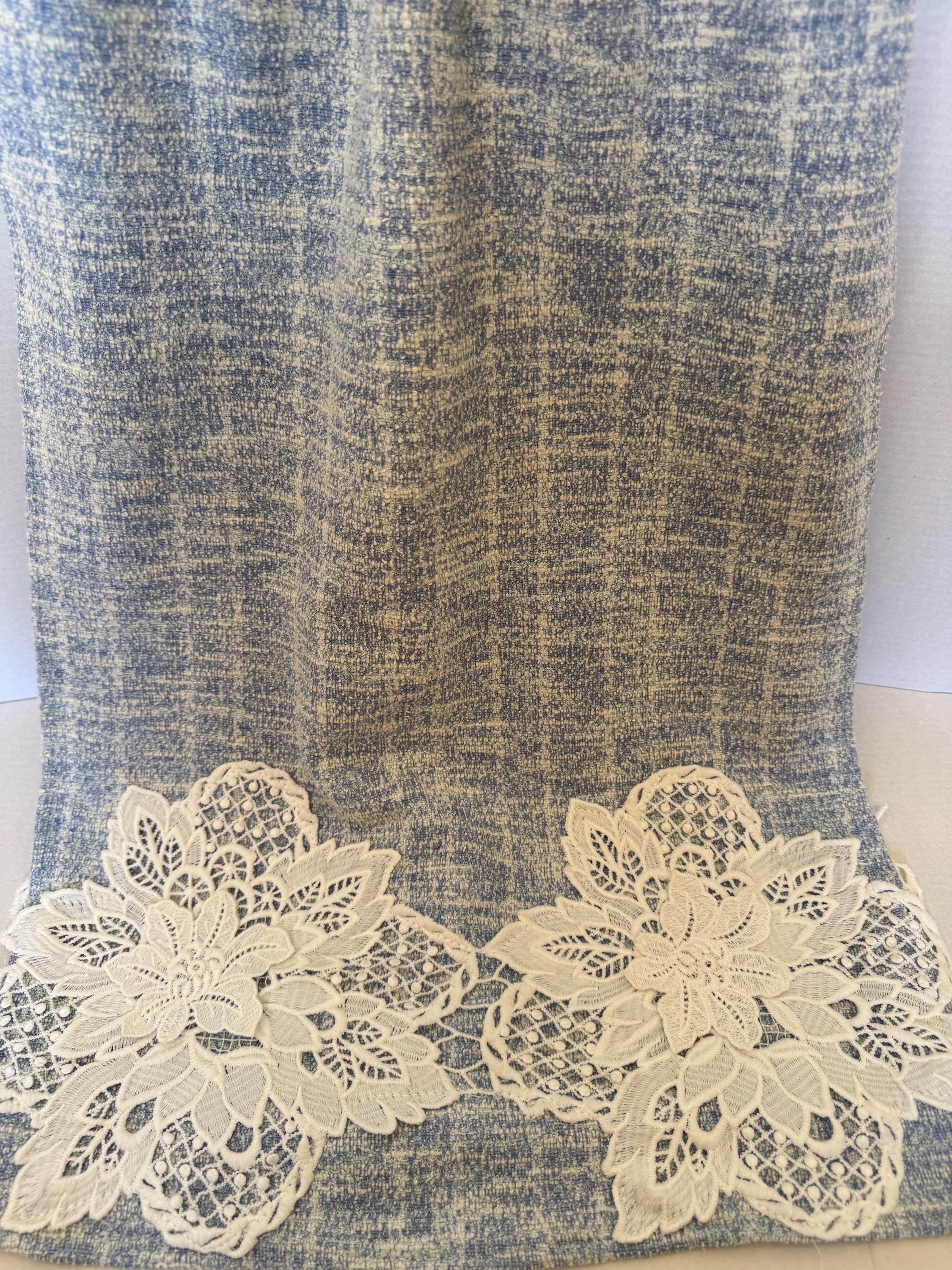This beautiful handmade scarf is made with a rich material. We have embellished the scarf with a gorgeous lace that adds elegance and makes the scarf perfect for any event.
