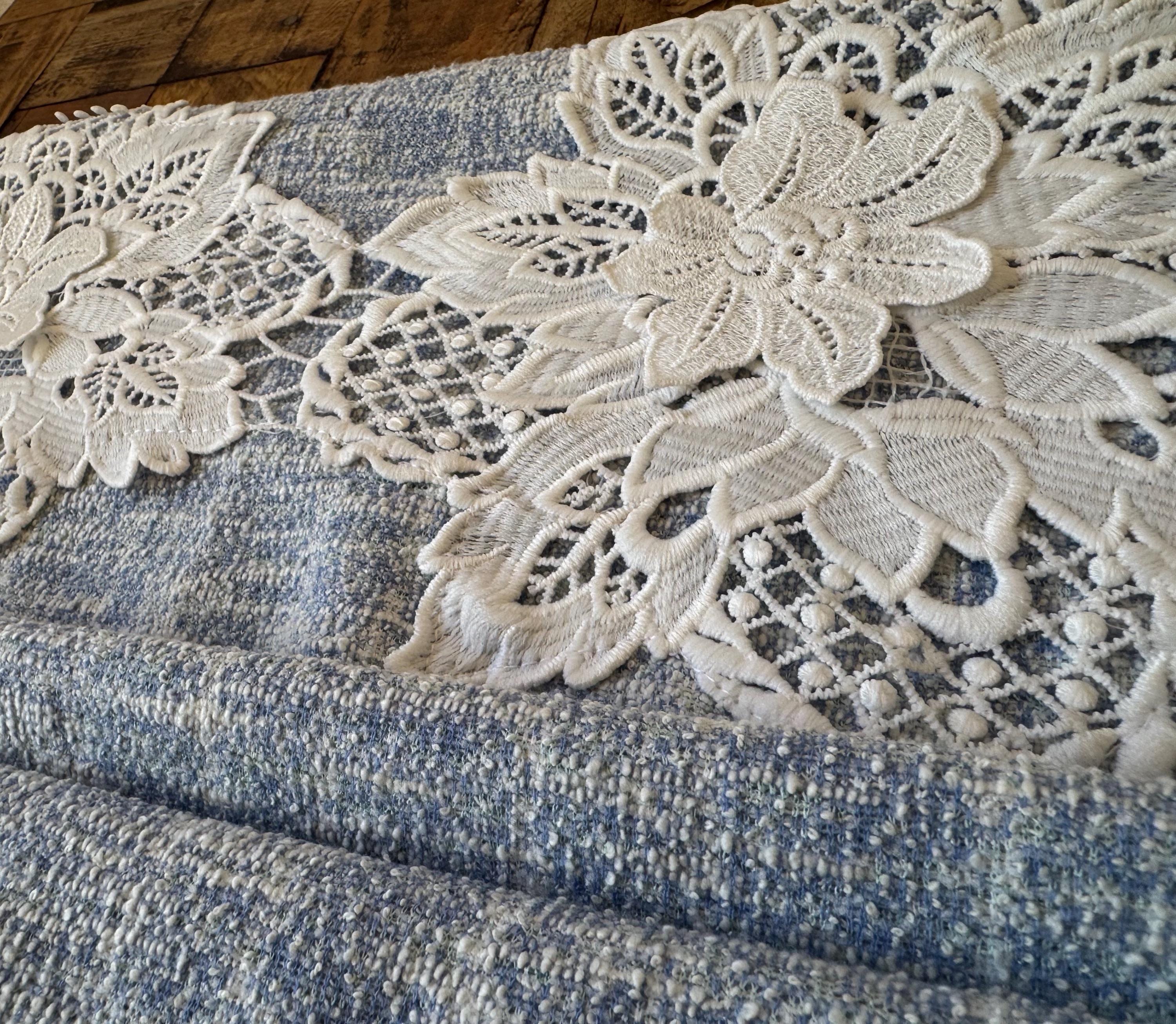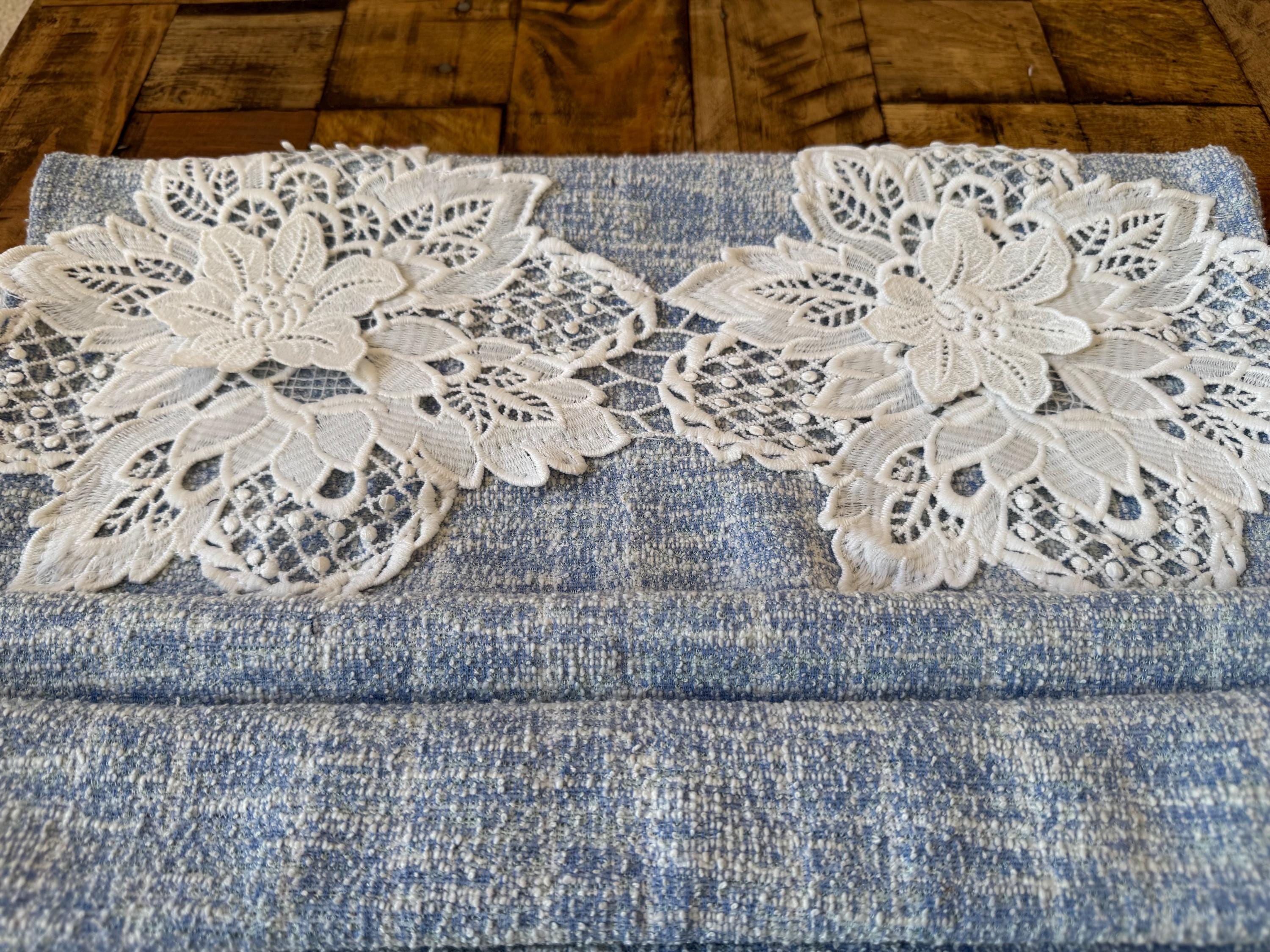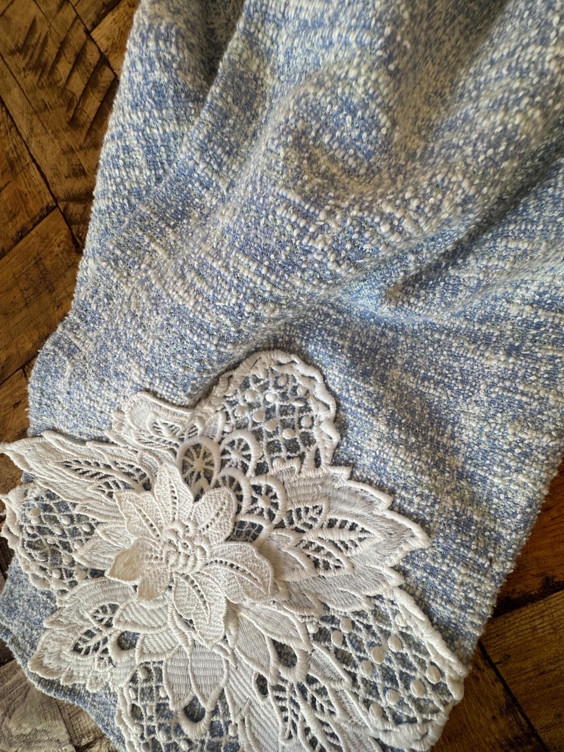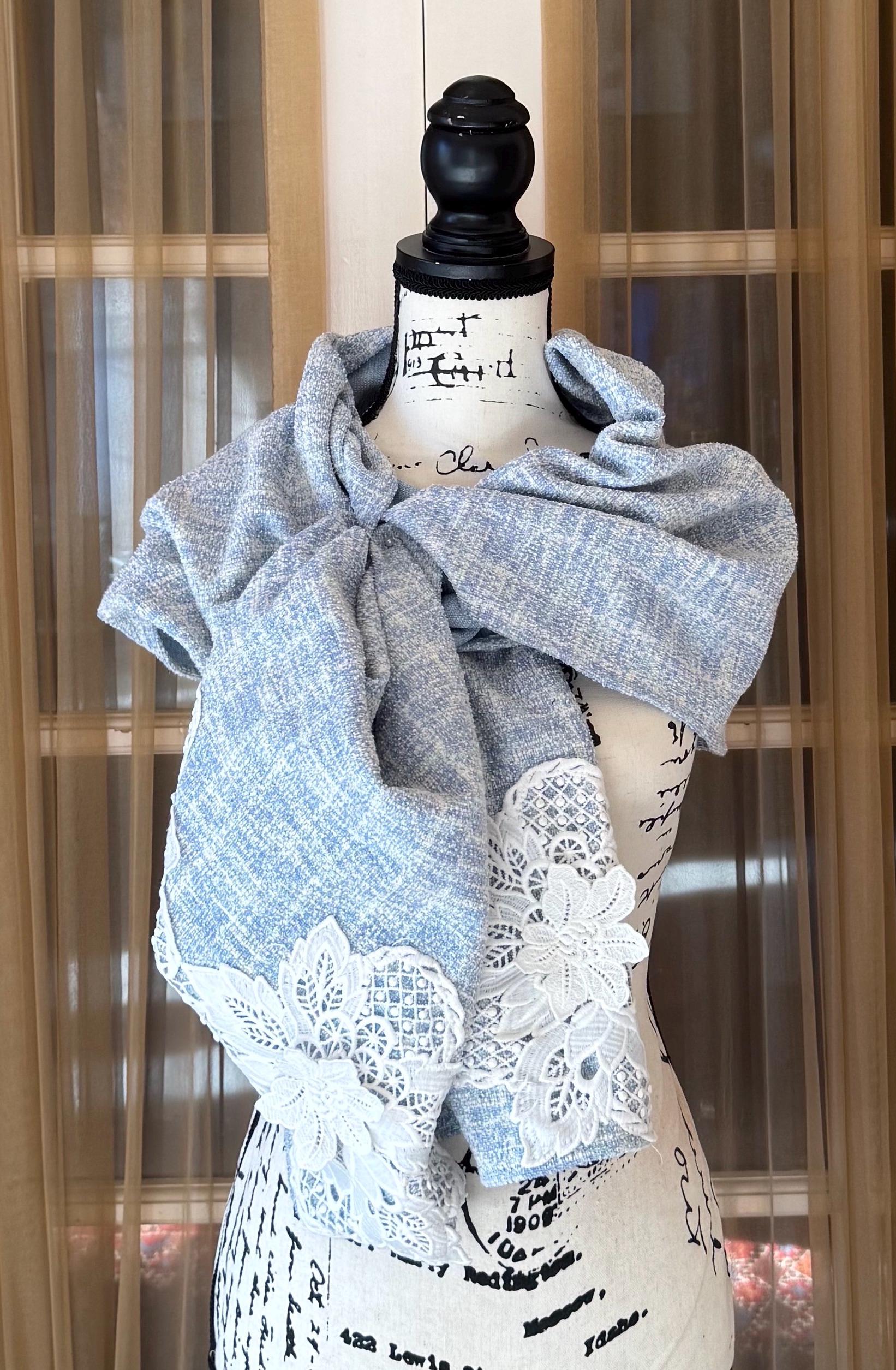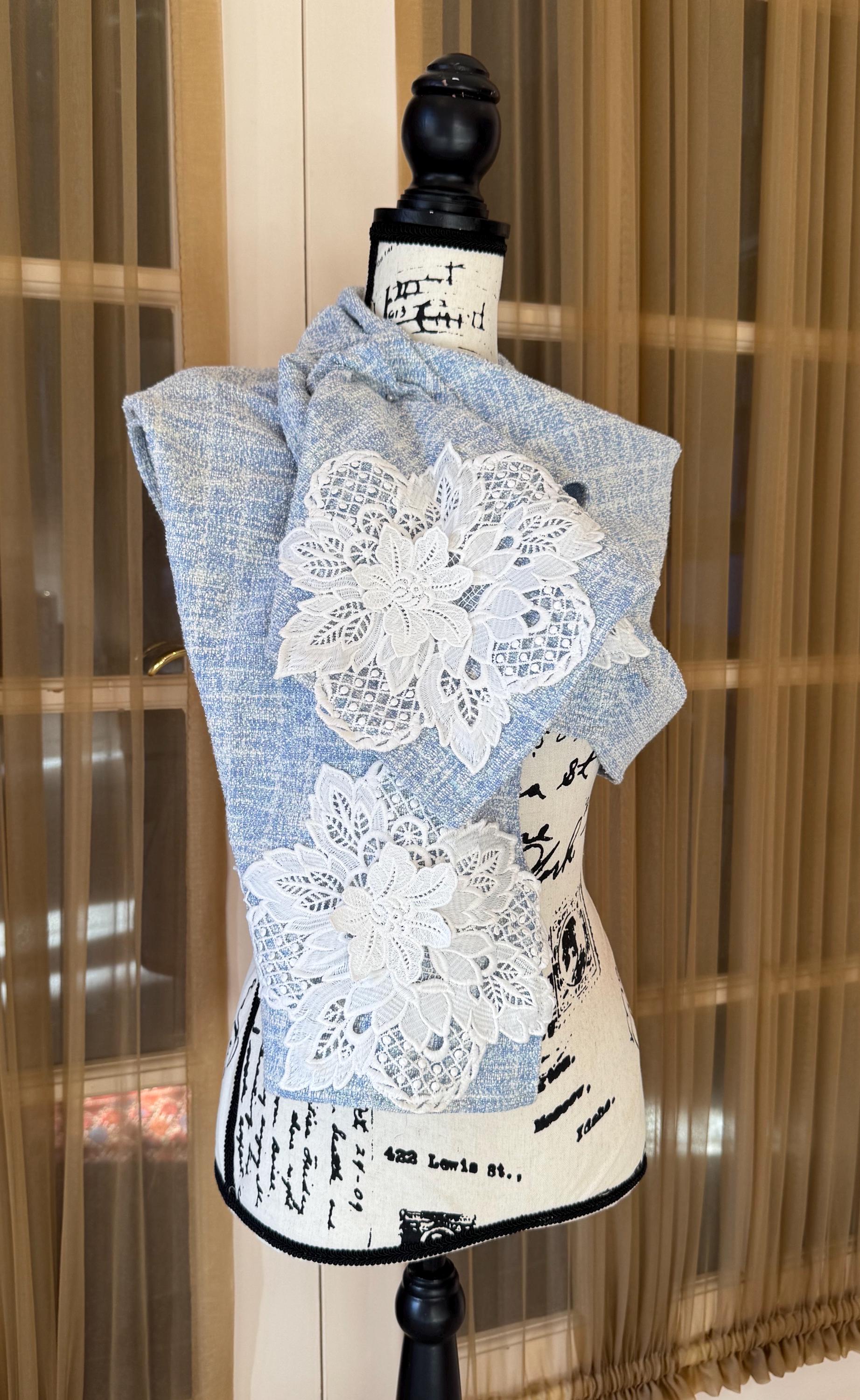 This beautiful handmade scarf is made with a rich material. We have embellished the scarf with a gorgeous lace that adds elegance and makes the scarf perfect for any event.