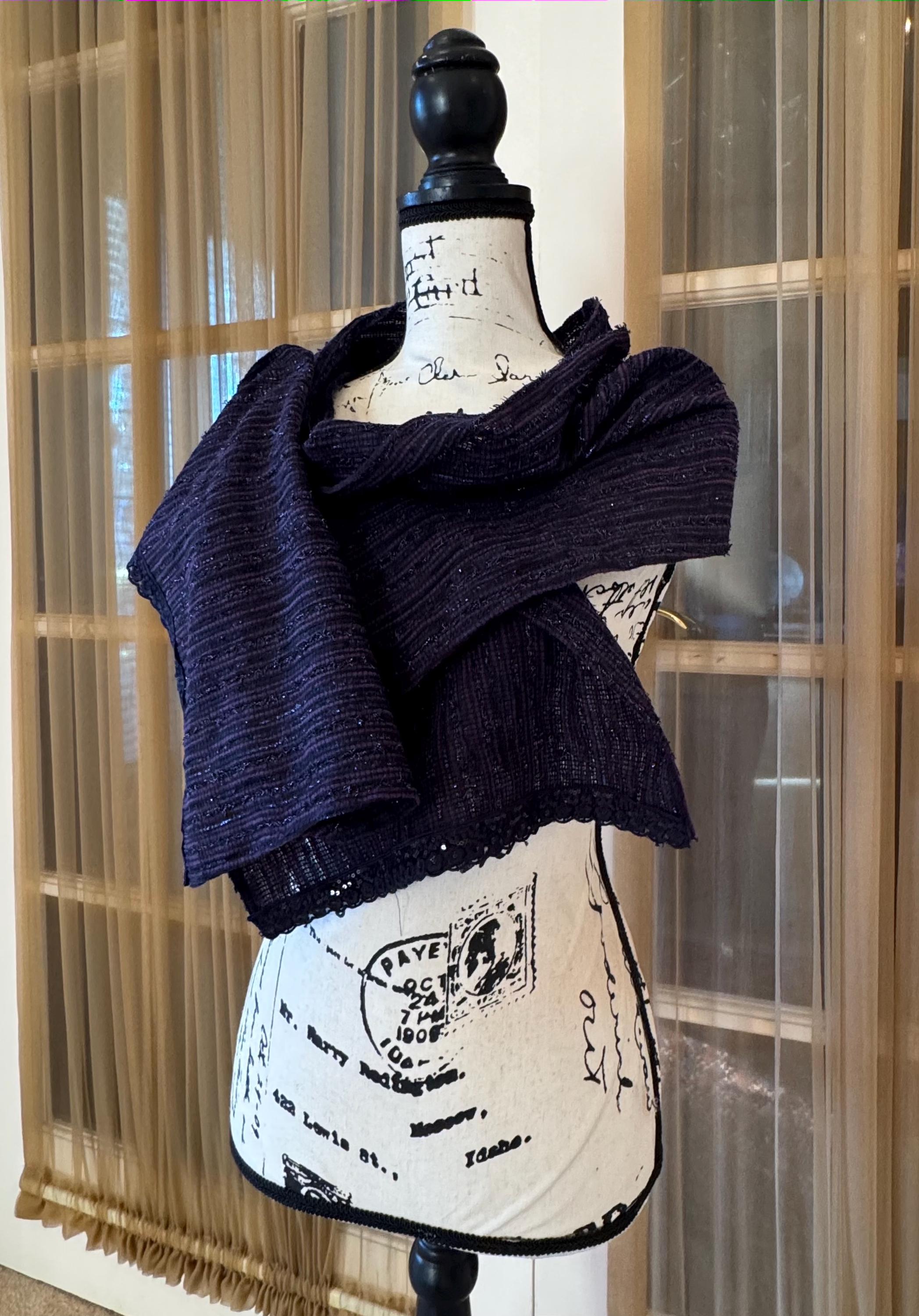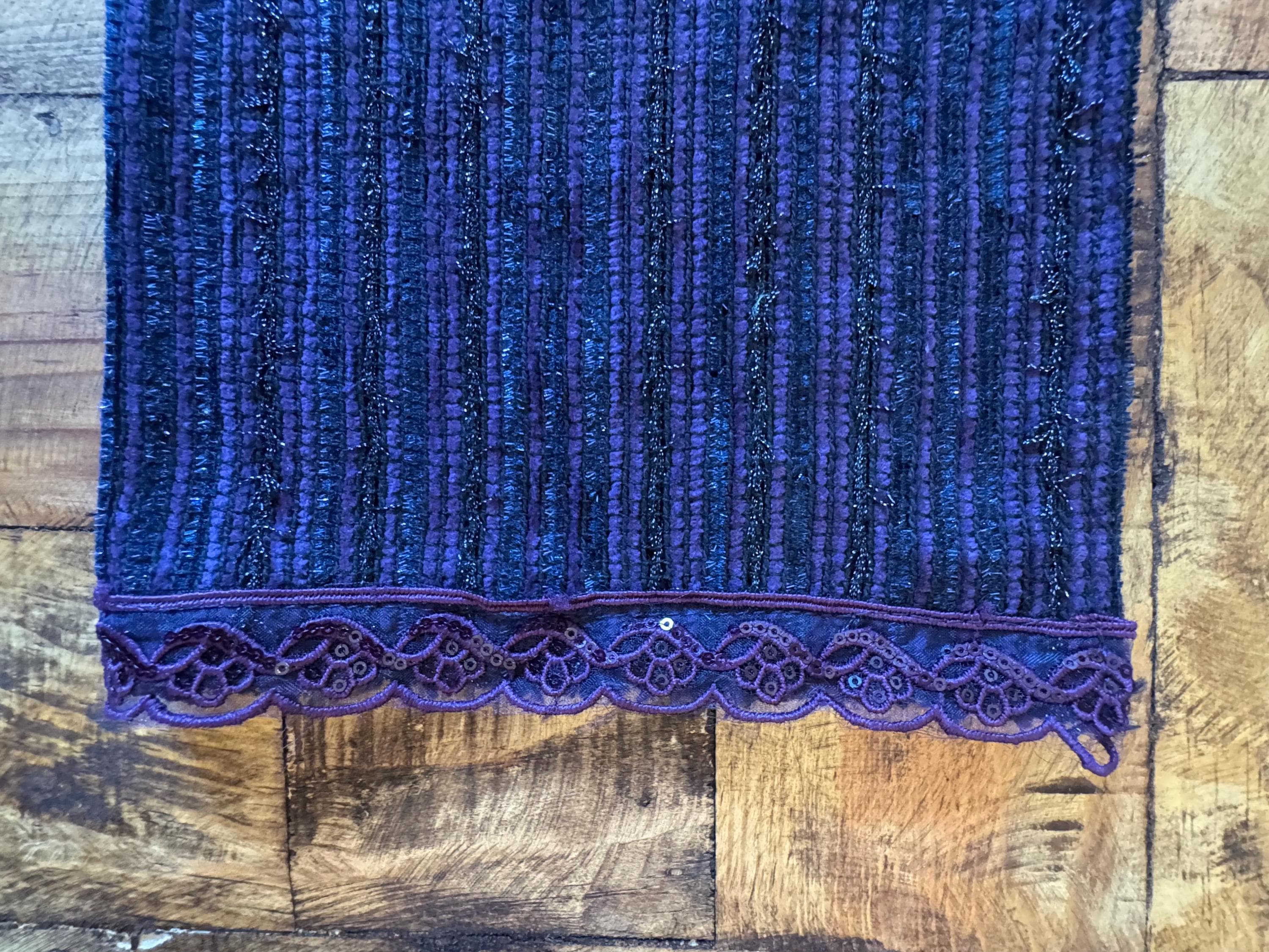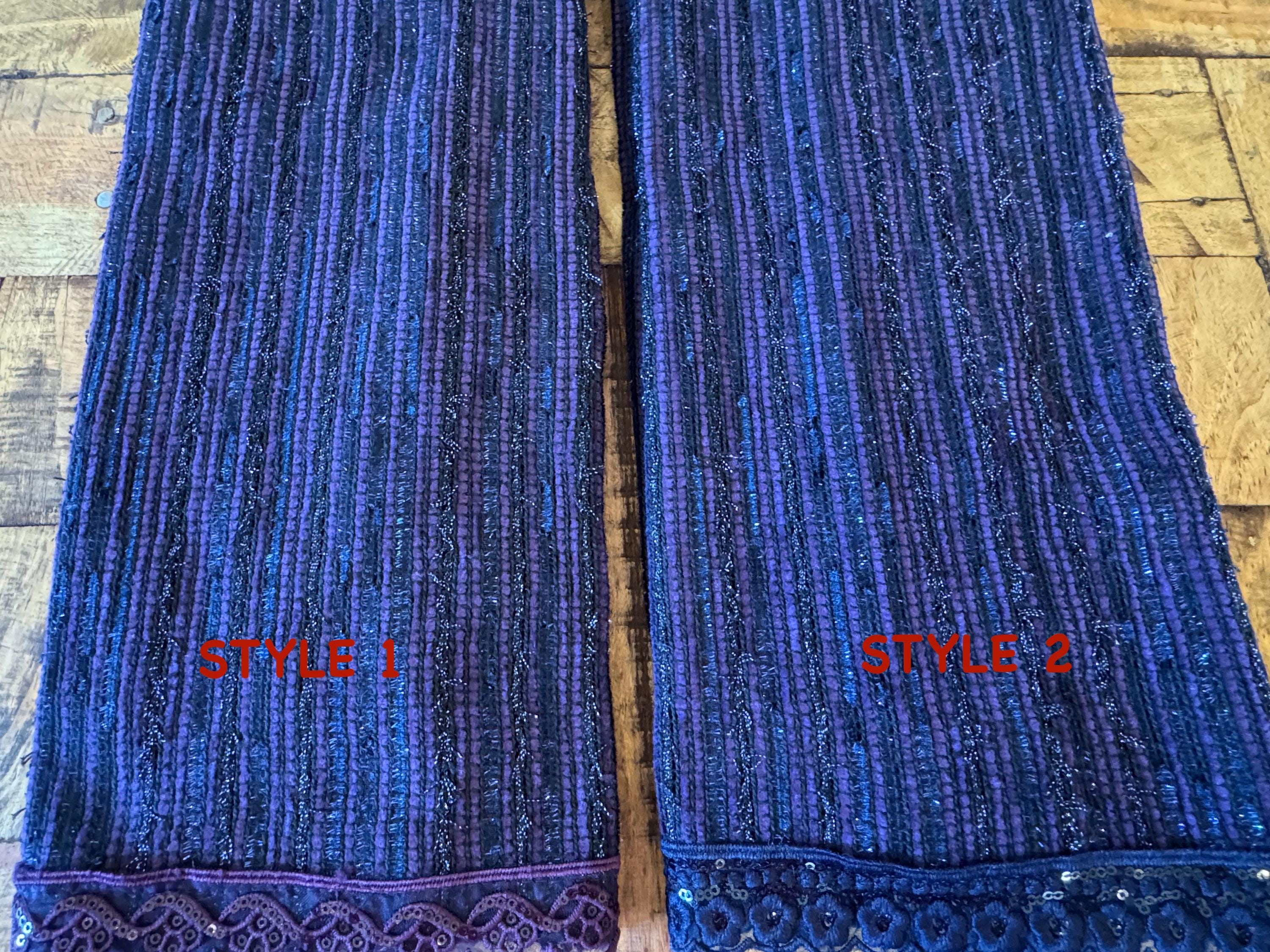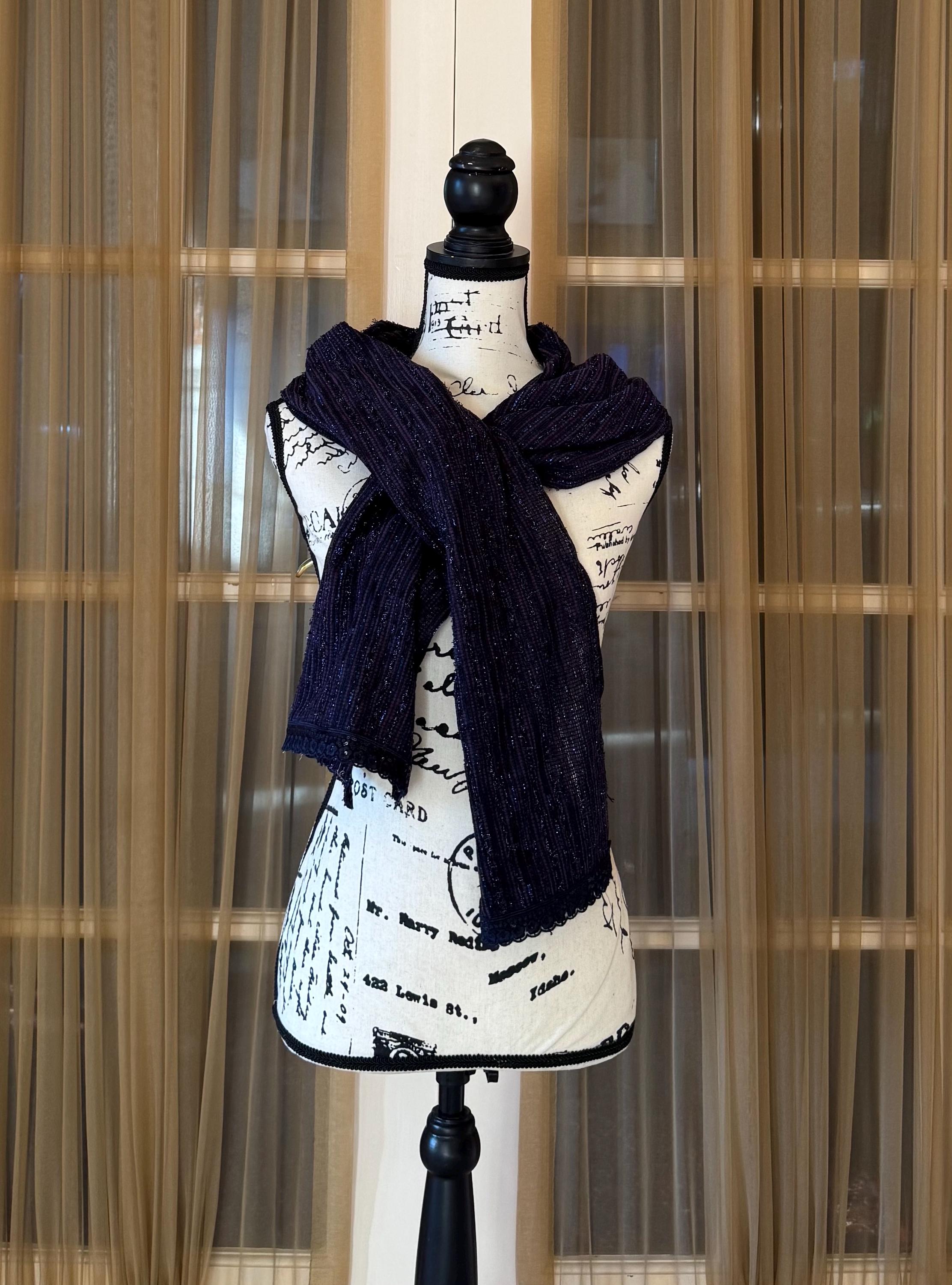 This beautiful handmade scarf has been created with a rich material that has a light shine and a great fall. We have embellished the scarf with a gorgeous trim, which makes the scarf perfect for any event. Please choose your trim color and mention your selected style number at the time of your purchase.