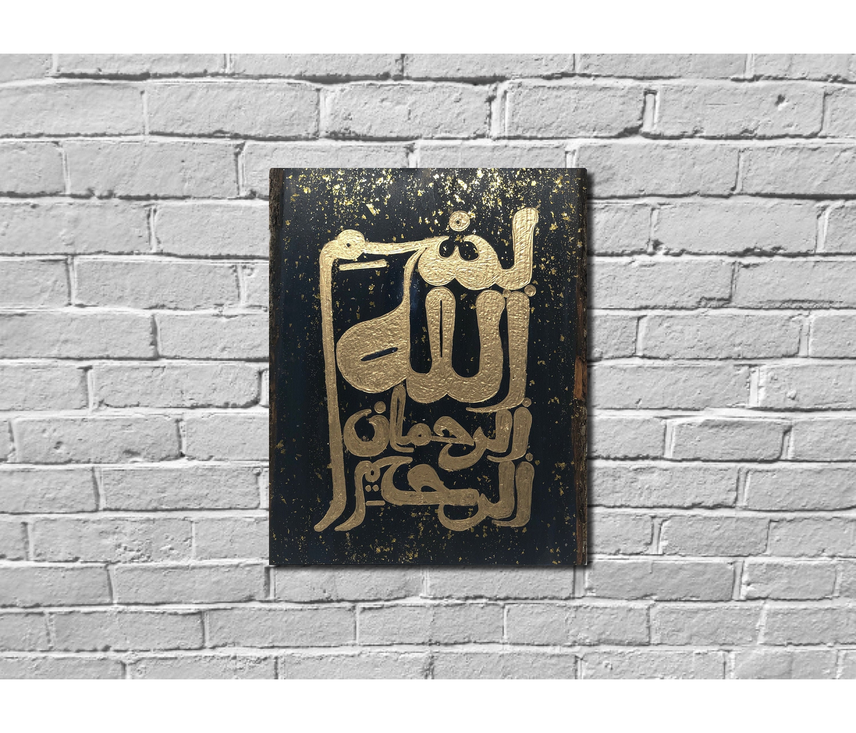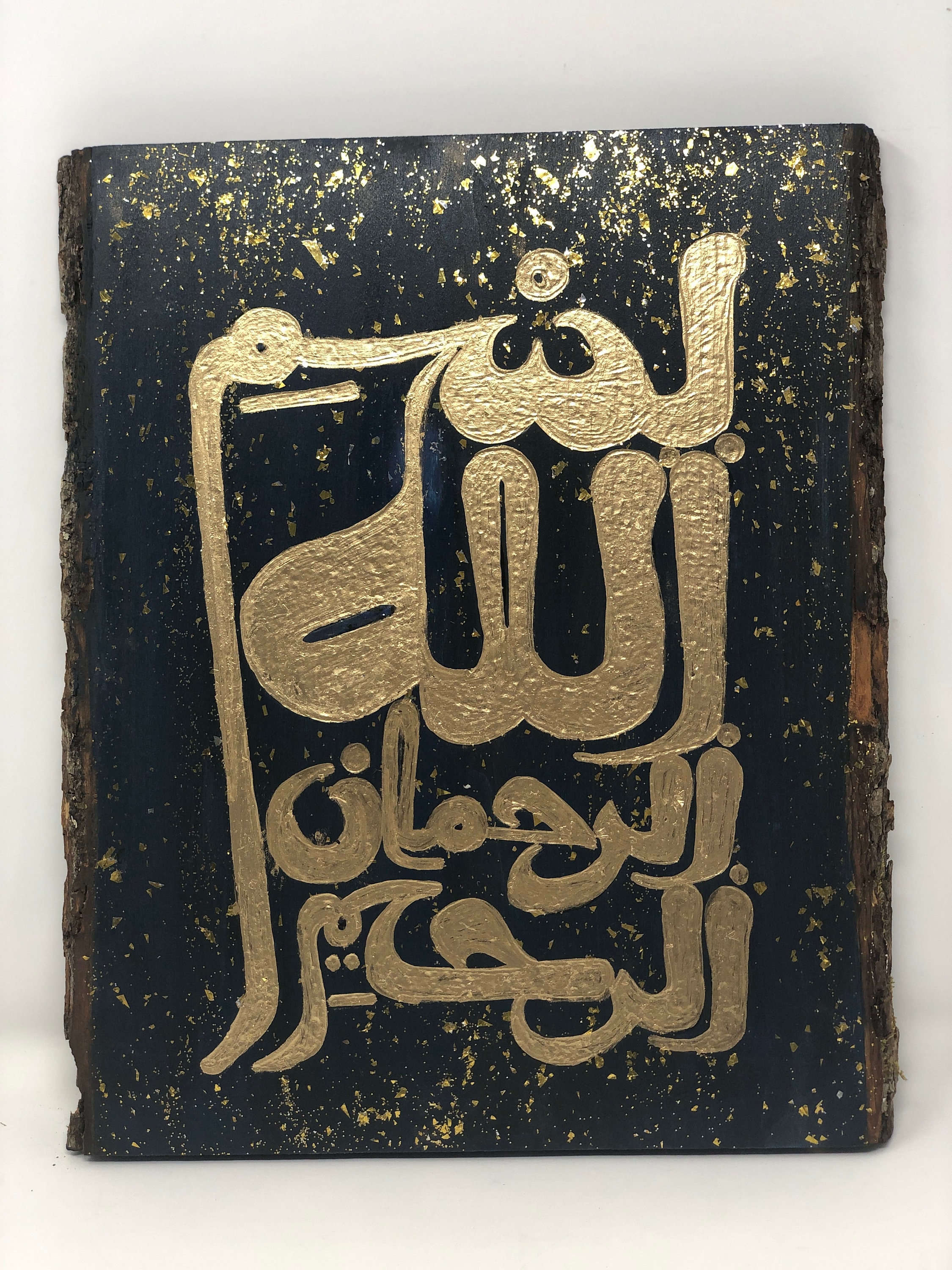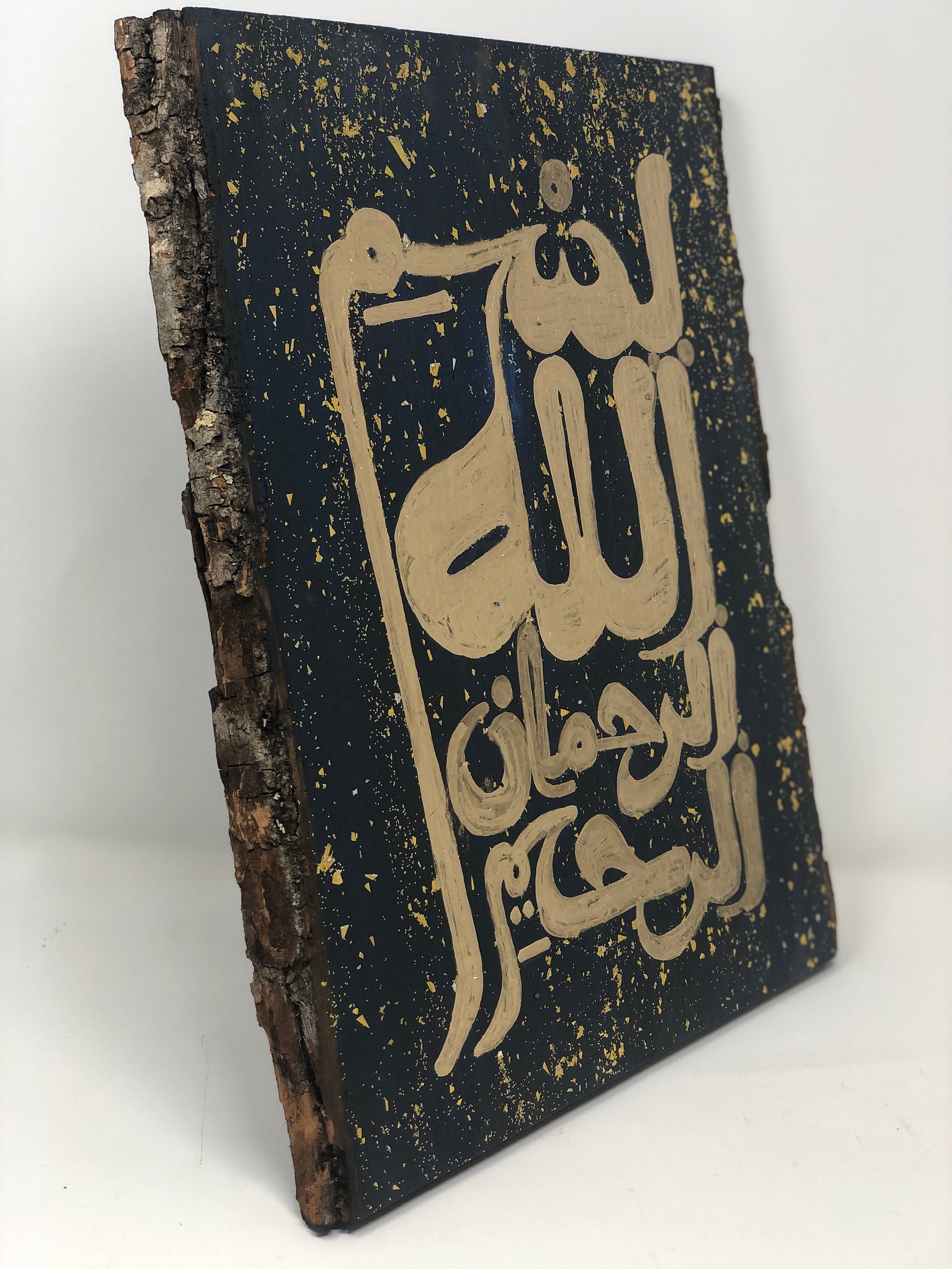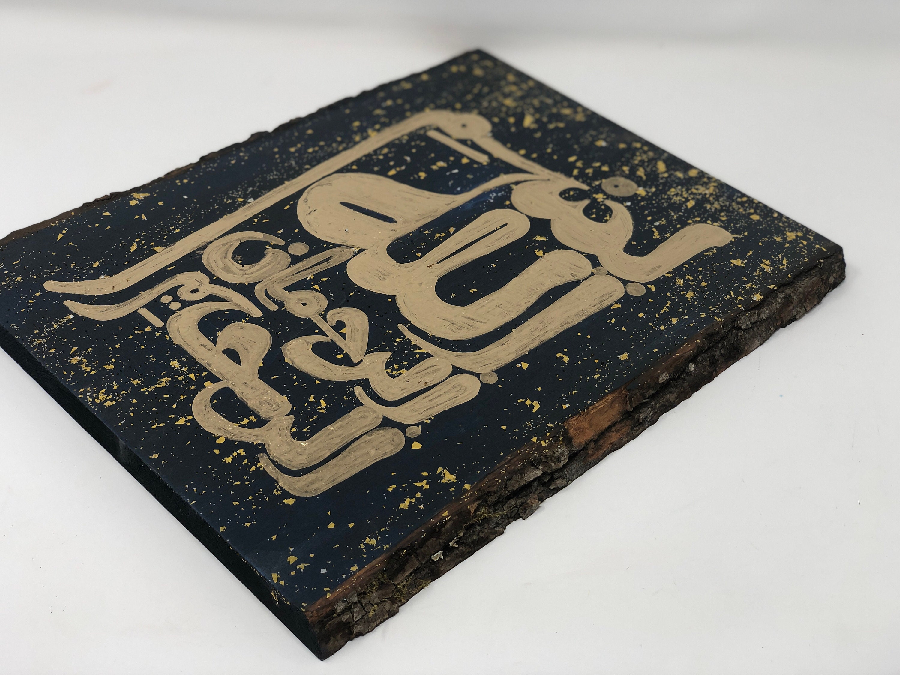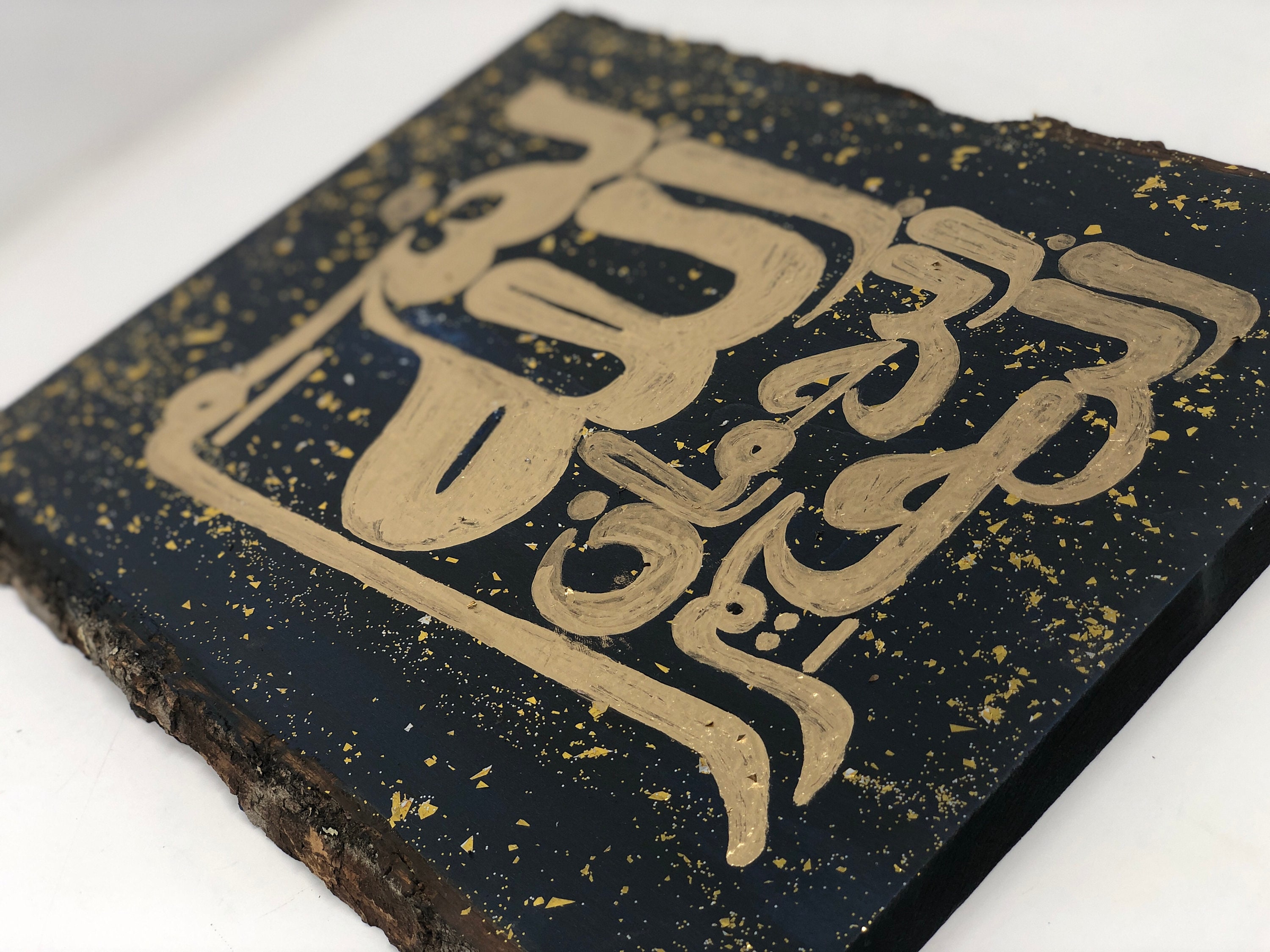 Although this Arabic calligraphy wall hanging appears to be a modern work of art, the actual handwriting which inspired this wall hanging belongs to a Sufi calligrapher named Shaykh Muhammad b. Qasim al-Qandusi. Al-Qandusi was born in Algeria in the early 19th century, but ended up moving to Fez Morocco in 1828 where he gained a reputation for his simple life and becoming a gnostic and knowledgeable person about religion. He died in 1861. During his lifetime, he wrote several books and also developed a revolutionary Maghribi style of handwriting, which we have showcased in this 11 x 13" wooden wall hanging.